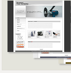 ■トップページ ×1p ■新着情報ページ ×1p (直近数件分一覧ページ) └・新着情報詳細ページ ■内部ページ ×4p (製品情報・サービス情報・等自由に制作できます) ■お問い合わせフォーム ×1p ■オリジナルブログ ×1p (直近数件分一覧ページ) └・ブログ記事個別ページ